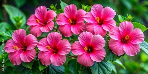 Closeup of Delicate Pink Hibiscus Flowers in Full Bloom, nature , tropical