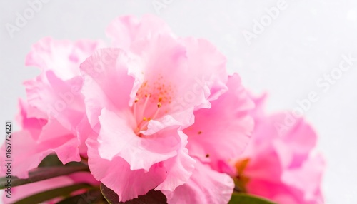 Close-up of delicate, ruffled pink flower petals, showcasing a soft, pastel color palette against a muted background.