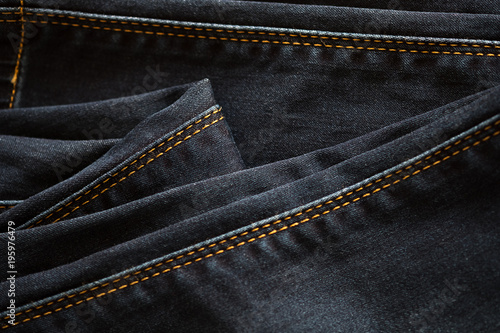 Closeup of Denim texture of denim Jeans and stitch for vintage