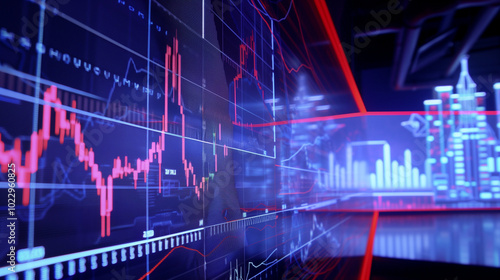 Close-up of digital screen showing oil price graph with rising lines, symbolizing market fluctuations and economic trends in the energy sector.