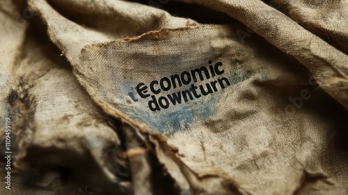 Close-up of dirty fabric with "economic downturn" printed on it.