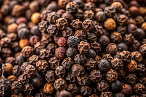 Close-Up of Dried Black Peppercorns: Texture and Rich Color - Drone Photography Stock Photo
