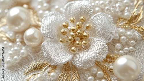 floral, embroidery, pearl, white, wedding, fashion, design, closeup, gold, texture, elegant, luxury, detail, ornate, bridal, celebration, romance, delicate, beautiful, background, pattern, material, fabric, needlecraft, craft, hand-made, decoration, embellishment, flower, blossom, bead, shimmer, glamour, style, classic, vintage, lace, sew, thread, art, creativity, feminine, soft, gentle, beadwork, apparel, textile, sewing, flower