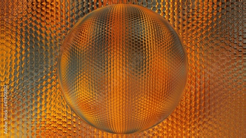 closeup of extreme rust oxidation flakes and patterns in bright orange colour and golden yellow hexagonal surface mosaic with sphere
