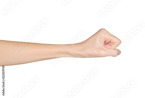 Closeup of female hand zero number or hammer sign. Isolated on white background.