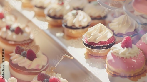 Close-up of French patisserie selection, delicate pastries, no humans, detailed textures, soft Parisian cafe ambiance