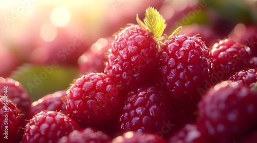 Close-Up of Fresh Raspberries with Fine Details and Vivid Red Hues Image