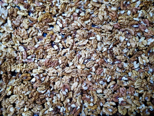 close-up of fresh raw peeled walnuts