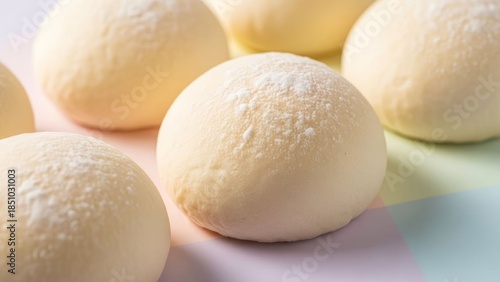 Close-up of Fresh Soft Dough Balls Dusting with Flour Displaying Texture and