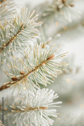 Close-Up of Frosted Pine Branch with Winter SparklesNew Year's concept, winter concept