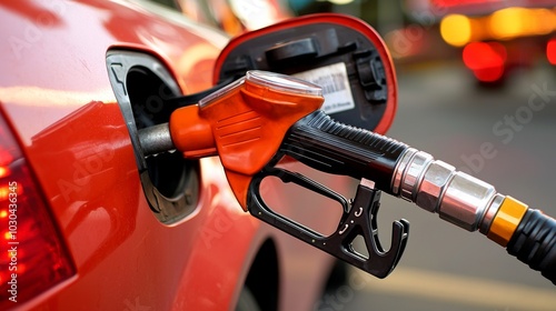 Close-up of gas pump nozzle, Fueling a vehicle at a gas station. Petrol pump