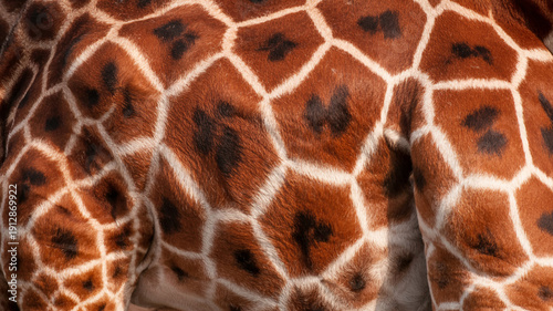 Close-up of giraffe's brown and white spotted fur pattern