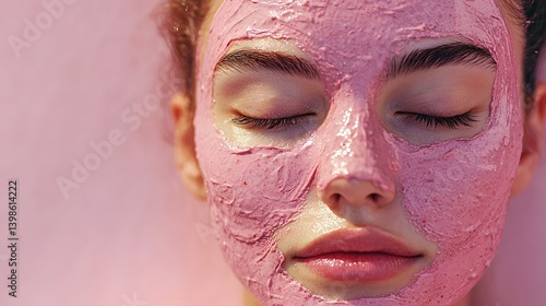 Close-up of girl with pink clay facial mask on her skin Generative AI