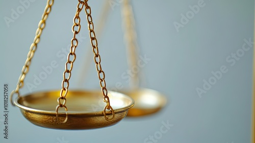 Close-up of gold justice scales on a plain backdrop, providing plenty of copy space for legal or law firm branding