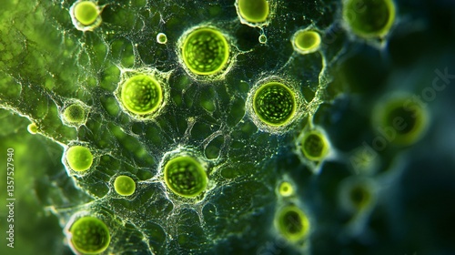 Close-Up of Green Algae Microorganisms in Innovative Biofuel Research