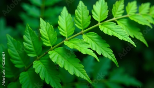 Close-up of green fern leaf texture in tropical forest, background, lush
