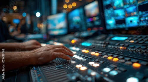 hand, control, panel, television, studio, monitor, technology, crew, professional, sound, men at work, office, broadcasting, equipment, media, operator, production, communication, editing, entertainment, sharpened, teamwork, innovation, light, audio, performance, skill, work, job, closeup, action, workspace, industry, journalism, scene, response, connection, design, creativity, hardware, leadership, setup, optical, operation, atmosphere, engagement, perspective