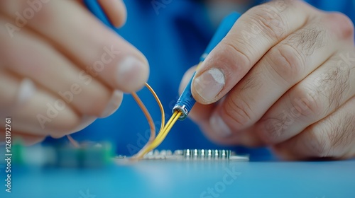 hand, wire, circuit board, electronic, assembly, connection, technology, engineering, workspace, soldering, component, tool, wiring, blue, precision, labor, craftsmanship, device, hardware, circuit, closeup, concentration, structure, equipment, innovation, repair, manual, skill, design, production, maintenance, workbench, task, hobby, maker