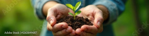 Close-up of hands holding a small tree sapling , trees, outdoor, nature