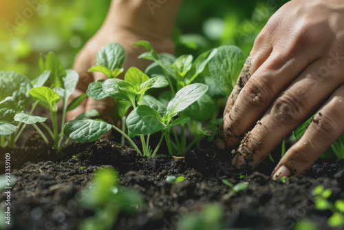 Close-up of hands planting seeds in the soil. It symbolizes growth and new beginnings.