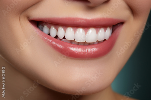 Closeup of healthy smile teeth woman. Detal mouth care.