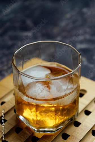 alcoholic beverage, ice cube, tray, closeup, fresh, drinking glass, drink, alcohol, still life, refreshment, whiskey, ice, unhealthy, table, wood, indoor, nobody
