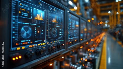 industry, factory, manufacturing, production, automation, technology, control, panel, display, digital, screen, datum, graph, chart, interface, system, monitor, engineering, future, innovation, machinery, equipment, process, industrial, futuristic, modern, machine, software