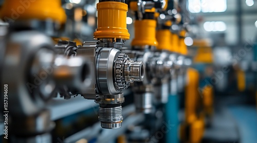 machinery, equipment, industrial, factory, manufacturing, technology, production, engineering, mechanic, metal, steel, part, component, gear, pipe, tube, automation, system, process, assembly, detail, precision, industry, workshop, apparatus, device, tool, construction, mechanism, element, infrastructure, object, chrome, yellow, silver, background, blurry, depth, sharpened, line, row