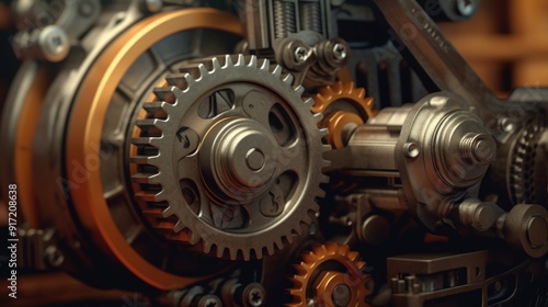 gear, mechanism, metal, machine, machinery, cogwheel, engineering, industrial, technology, design, manufacturing, mechanical, automotive, precision, robotic, automation, part, component, system, assembly, gearbox, transmission, engine, motor, steel, brass, bronze, silver, chrome, grey, gold, brown, close, up, macro, detail, structure, abstract