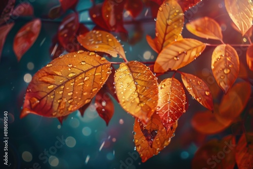 Close-up of leaves with water droplets, great for nature or science illustrations