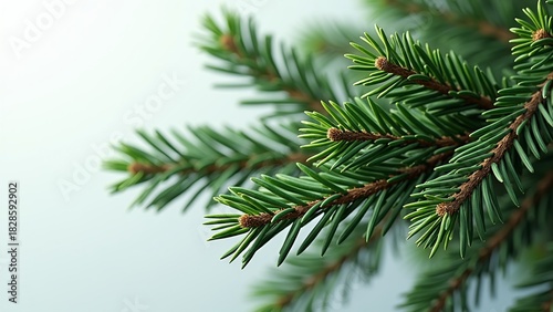 Closeup of lush green pine tree branches on light background with copy space for eco friendly marketing campaign or corporate presentation backdrop with natural textures