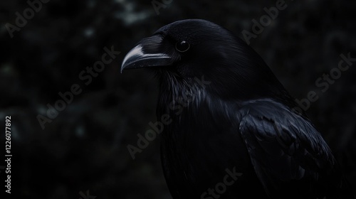 raven, glossy, black, feather, dark, bird, plumage, beak, eye, mysterious, nature, wildlife, ornithology, monochrome, shadow, elegant, avian, sleek, intelligent, wilderness, forest, enigmatic, wing, beady, sharpened, portrait, darkness, nocturnal, perched, predator, flight, wild, watchful, animal, colours, shiny, texture, feathered, crow, aura, mystical, species, majestic, adaptation, habitat