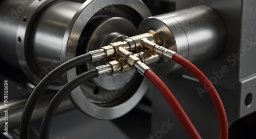metal, machine, system, industry, engineering, tube, hose, mechanic, connection, detail, macro, pressure, fluid, black, red, brass, fitting, industrial, hardware, assembly, power, equipment, complex, manufacturing, steel, cylinder, closeup, automation, technology, pipe