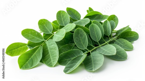 Close-Up of Moringa Oleifera Leaves on a White Background, Known for Their Nutritional Benefits