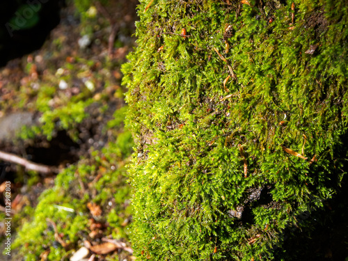 Close-up of northern moss and lichen, a beautiful combination of textures and colors reflecting the unique flora of the Arctic