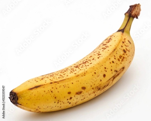 Close-up of one ripe banana, healthy, on a white background.