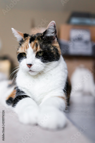 cat, down, unhappy, lying, room, calico, home, white, looking, cute, hair, carpet, felino, face, living, sad, closeup, female, portrait, old, angry, animal, eye, adorable, vertical, pet, serious, domestic, relaxing, rest, floor, green, indoor, orange, house, 1, short, senior, inside, paw, front, sleepy, annoyed, sleepy, cardboard, box, moving, relocation, stress, depression