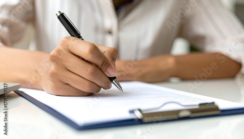 person, writing, clipboard, hand, pen, document, form, paper, desk, white, office, business, work, handwriting, sharpened, closeup, detail, light, professional, formal, signature, input, datum, information, signing, filling, detail