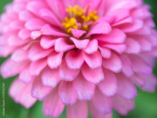 close-up of pink zinnia flower.