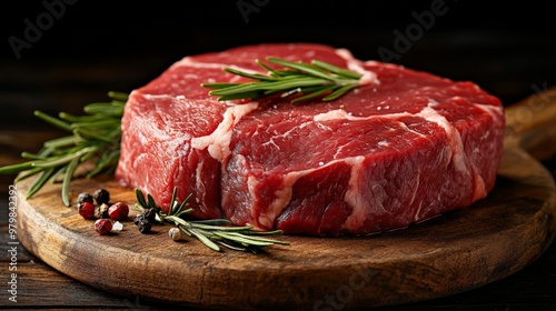 close-up of raw fresh beef meat ribeye, placed on a cutting board
