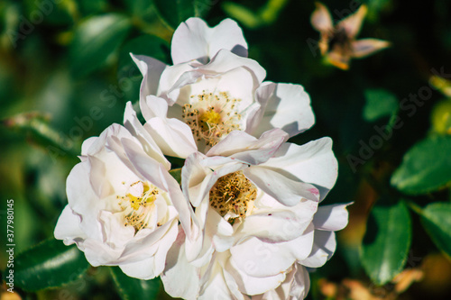 Closeup of roses growing in the countryside of Reims in France in Autumn