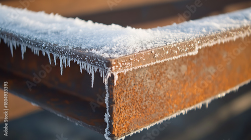rust, metal, ice, icicle, winter, glacé, texture, corrosion, weather, cold, steel, frost, decay, beam, closeup, macro, detail, surface, aged, oxidized, structure, material, pattern, abstract, metallic, iron, snow, icy, seasonal, element, climate, environment, outdoors, weathered, nature, natural, design, art, background, foreground, industrial, construction, weathering