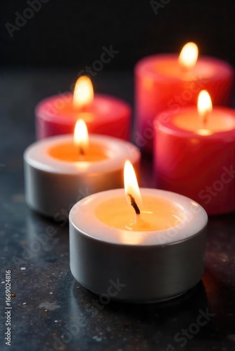 Close-up of several burning candles, wax dripping, soft focus, suggesting relaxation and stress relief Perfect for articles on aromatherapy, self-care, or mindfulness , yellow, wellness
