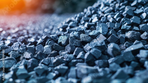 Close-Up of Shiny Black Coal Rocks with Blurred Background and Warm Light