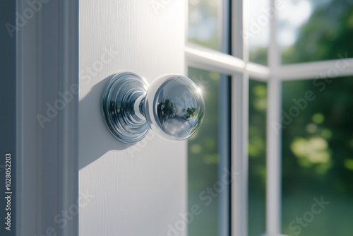 door handle, shiny, window, green, detailed, closeup, metal, nature, home, interior, modern, clean, elegant, simplicity, design, access, perspective, clarity, safety, bright, inviting, contemporary, fresh, entry, viewpoint, house, clear, sharpened, minimalistic, transition, sleek, indoor, serenity, architectural, decor, daily, lifestyle, refined, structural