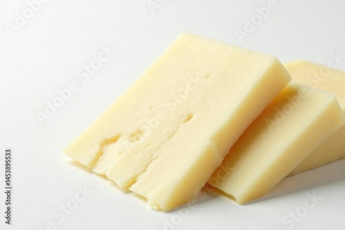 Close-up of sliced white cheese on white background , isolated object, studio, food photo