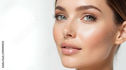 model, young, woman, skin, glow, smile, white, background, beauty, make-up, groomed, glowing, natural, portrait, health, face, closeup, photo, design, advertising, cosmetic, sale, banner, poster, radiance, style, cosmetology, care, glamour, positivity, confidence, softness, inspiration, campaign, mag, commerce, blog, fashion, marketing, happiness, girl, glamour
