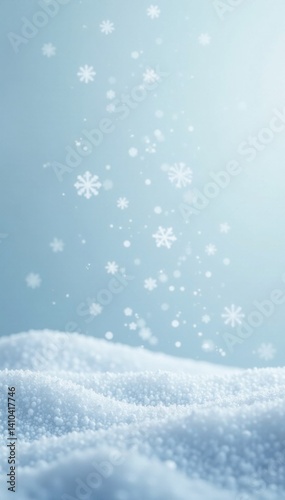 Close-up of snowflakes gently falling on a white background, winter, cold, intricate