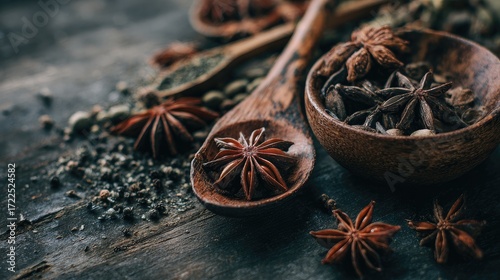 Close-Up of Star Anise in Creative Food Composition