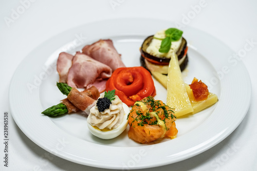 Closeup of traditional italian appetizer on table.